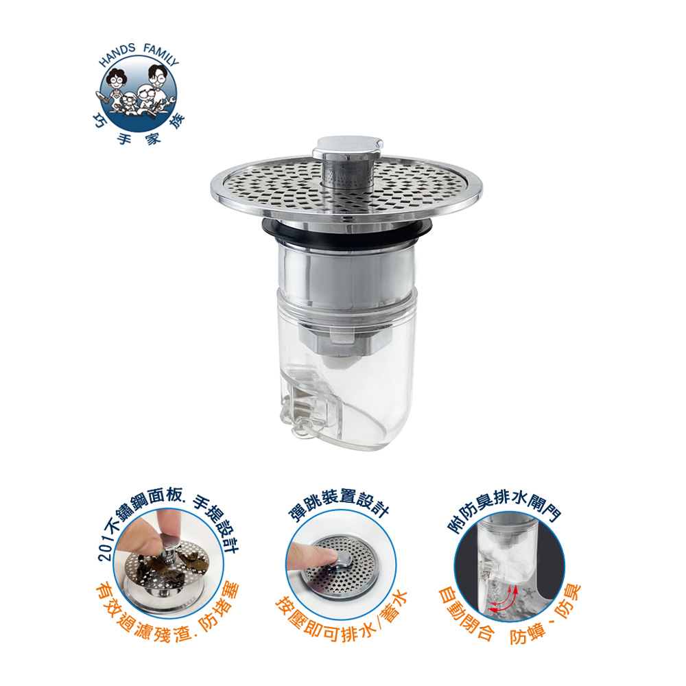 面盆按壓式毛髮阻隔濾網組